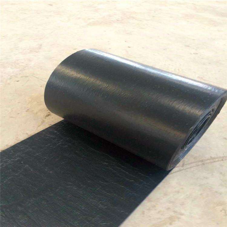 3、消能缓冲作用。抗裂贴是具有一定延伸性的材料,高聚物有较好的低温柔韧性,铺设在沥青路面层间,相当于设置了一弹性层,基层裂缝拉应力通过抗裂贴高聚物扩展到更宽范围,从而缓解裂缝处应力强度,有弹性的层间能起到吸收部分拉伸能量的作用。